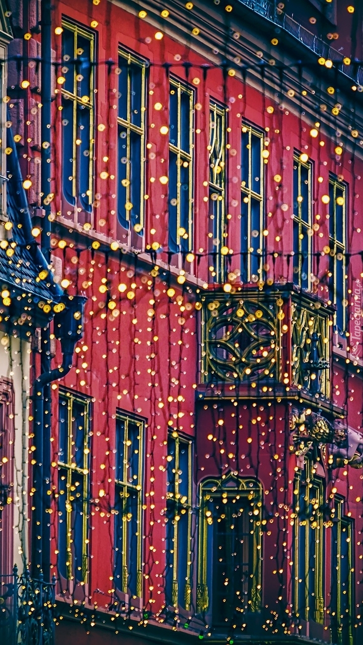 Edytor tapety: Kamienica udekorowana światełkami