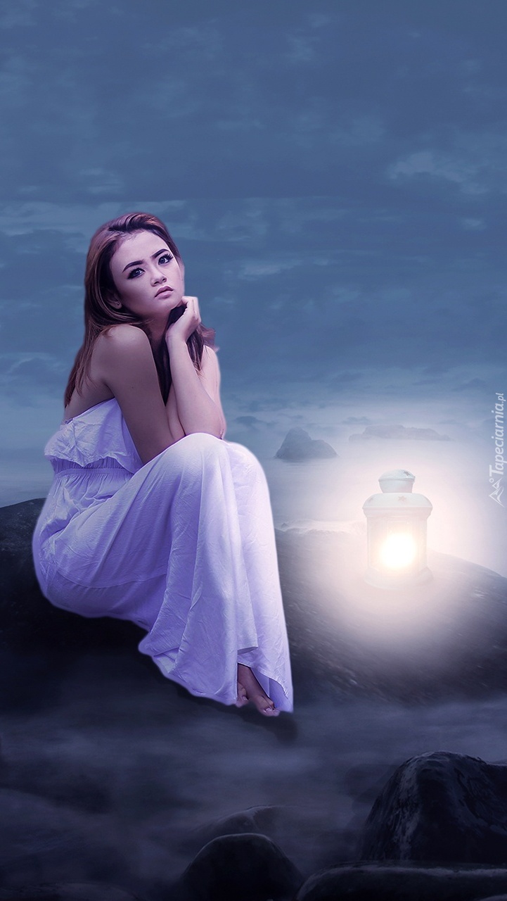 Edytor tapety: Zamyślona dziewczyna z lampionem