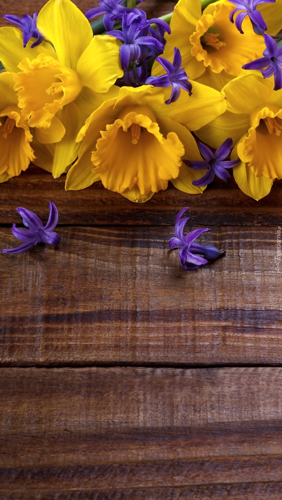 Edytor tapety: Żonkile i foletowe kwiatki