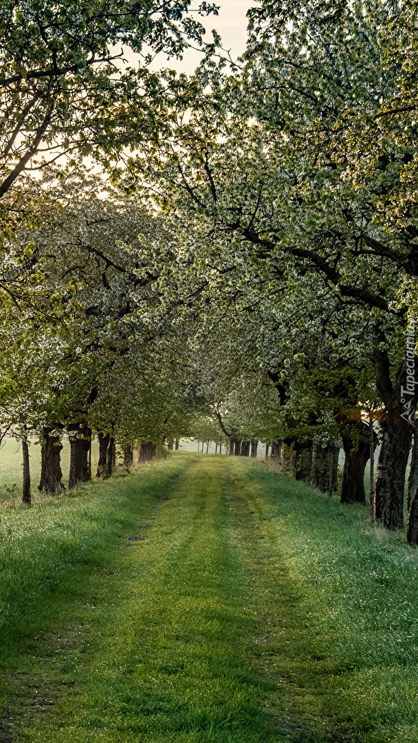 Edytor tapety: Droga wzdłuż kwitnących drzew