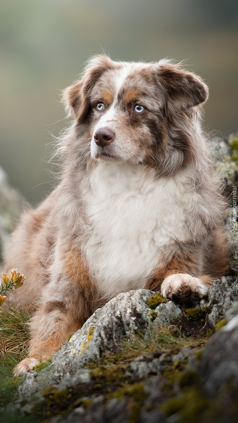 Edytor tapety: Owczarek australijski na skale
