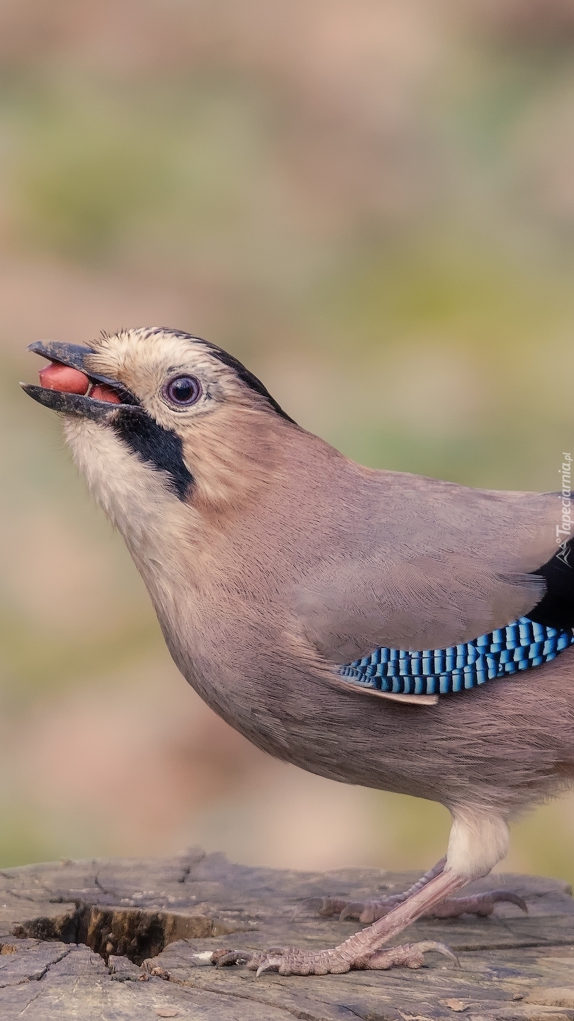 Edytor tapety: Sójka z ziarenkami w dziobie