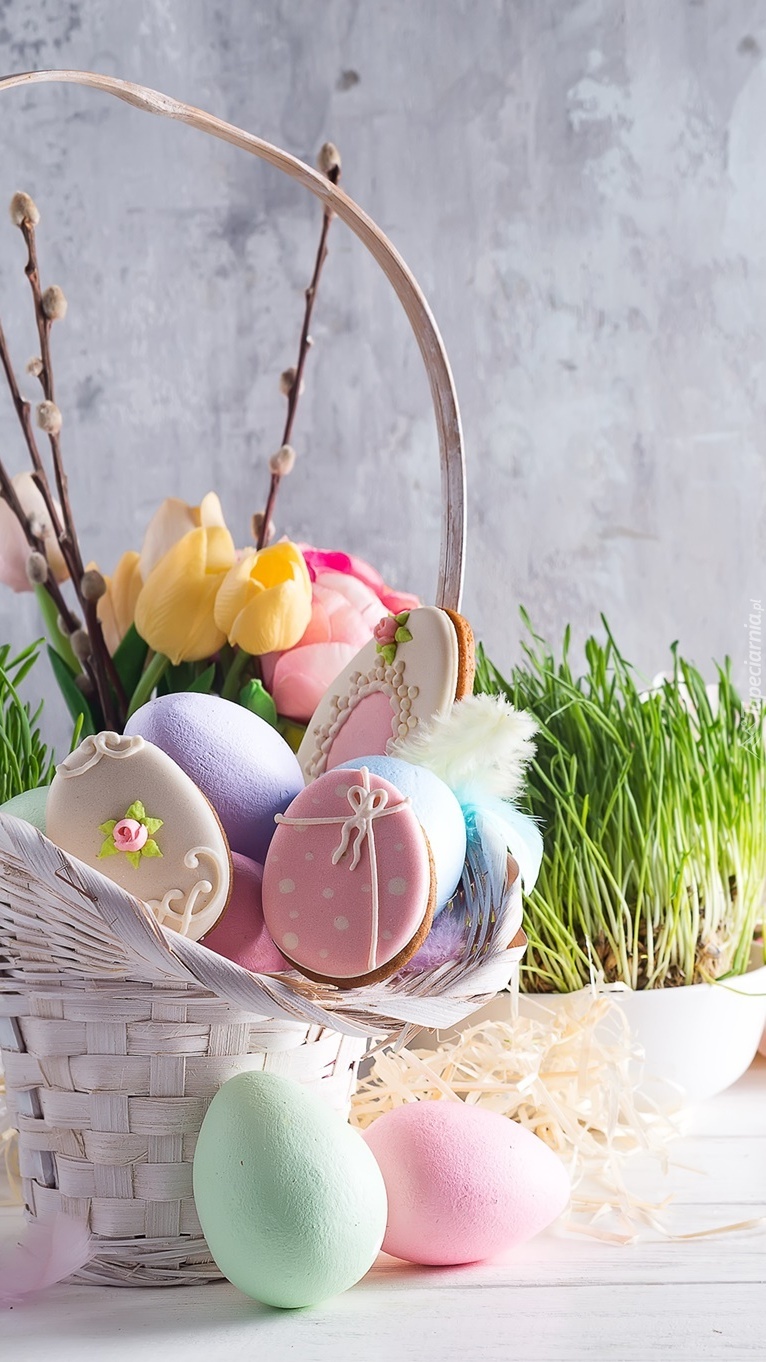 Edytor tapety: Wielkanocny koszyczek z pisankami