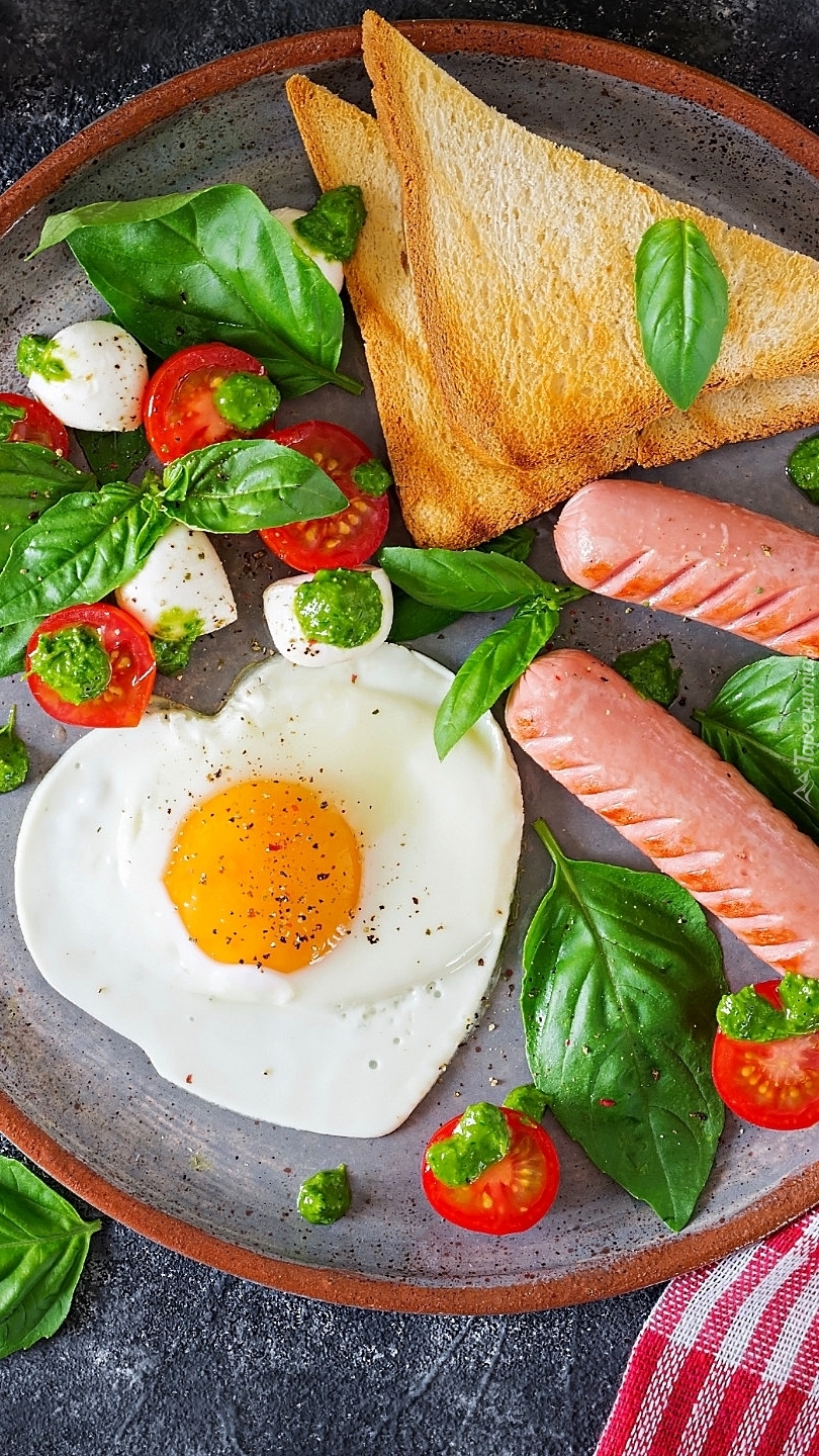 Edytor tapety: Jajko sadzone obok parówek i chleba