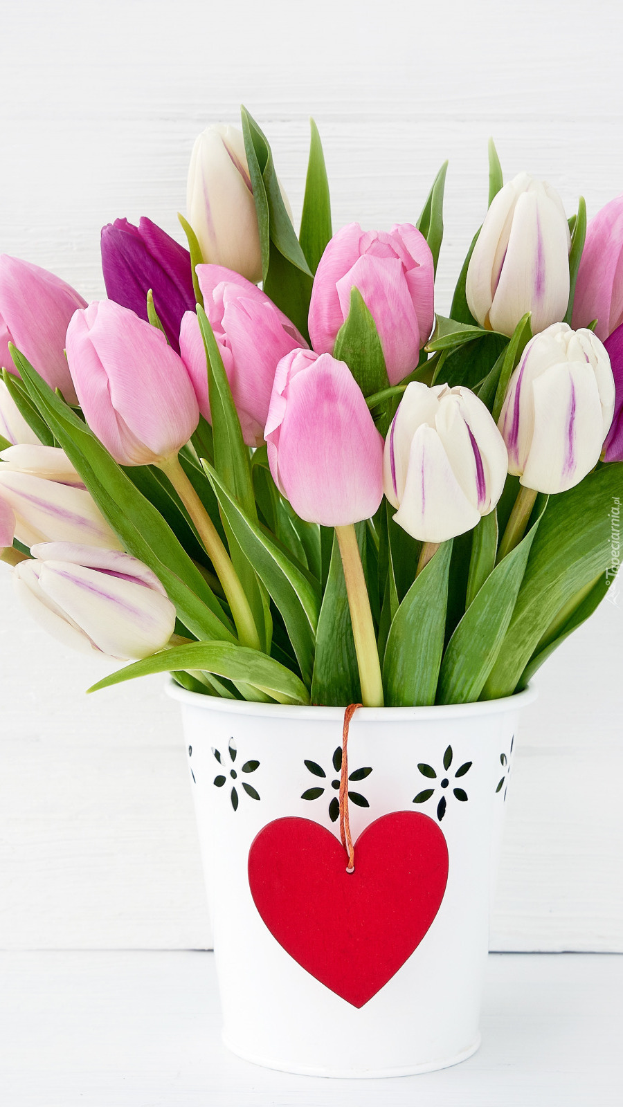 Edytor tapety: Tulipany w doniczce z serduszkiem