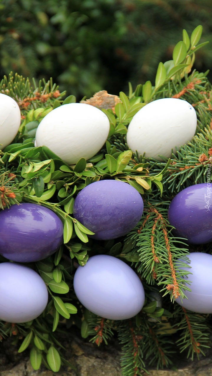 Edytor tapety: Pisanki na gałązkach jodły i bukszpanu