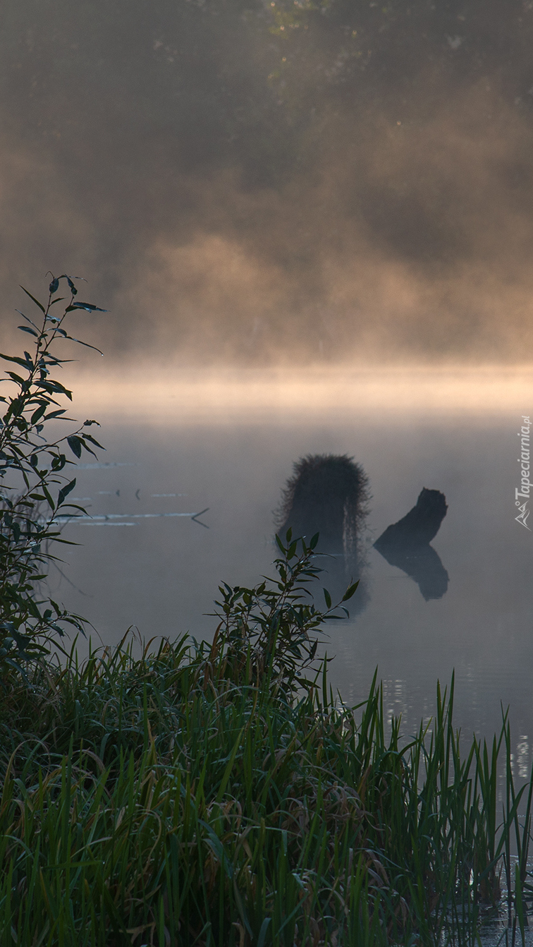 Edytor tapety: Trawa na brzegu rzeki we mgle