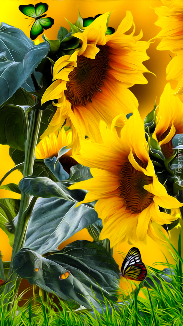 Edytor tapety: Graficzne słoneczniki z motylkami