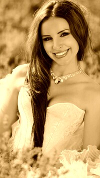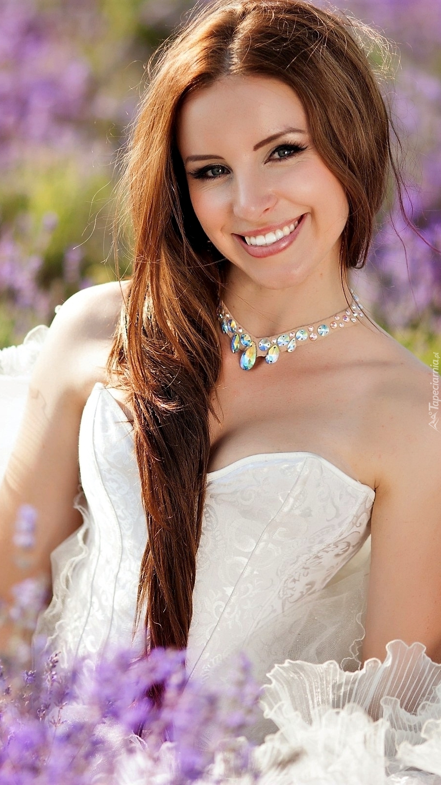 Edytor tapety: Uśmiechnięta i długowłosa panna młoda