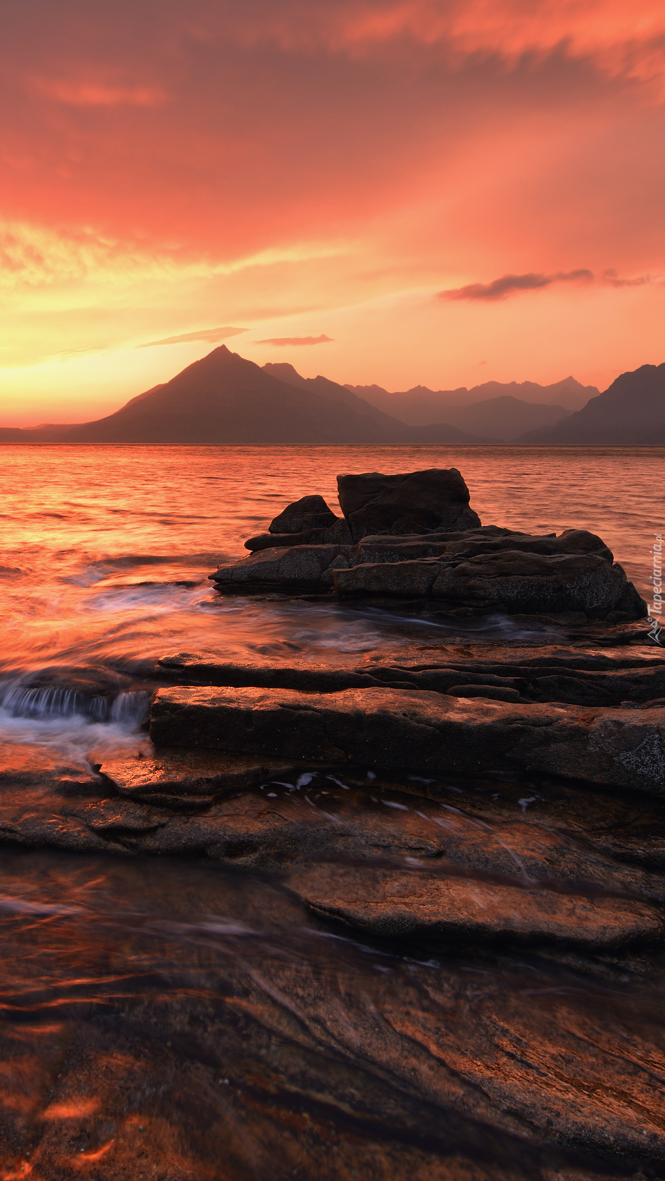 Edytor tapety: Morze z górami w tle