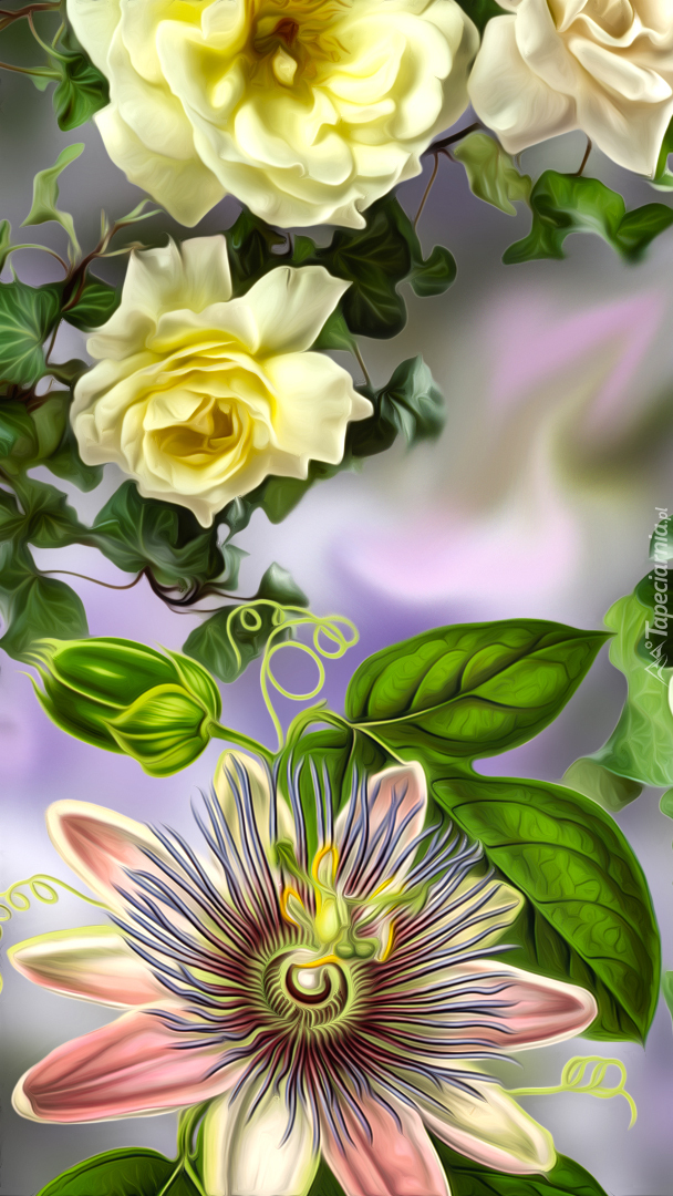 Edytor tapety: Żółte róże i męczennica w grafice