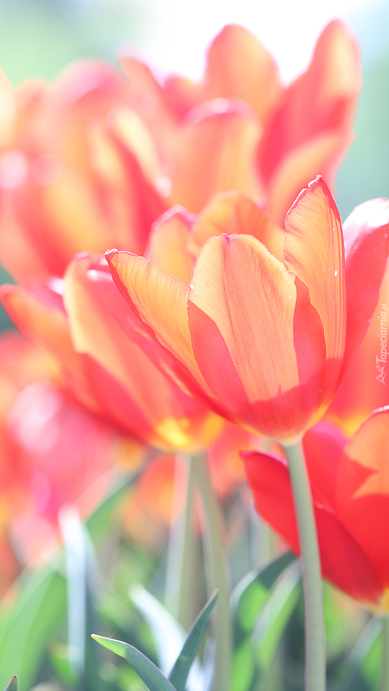 Edytor tapety: Czerwone tulipany w blasku słońca