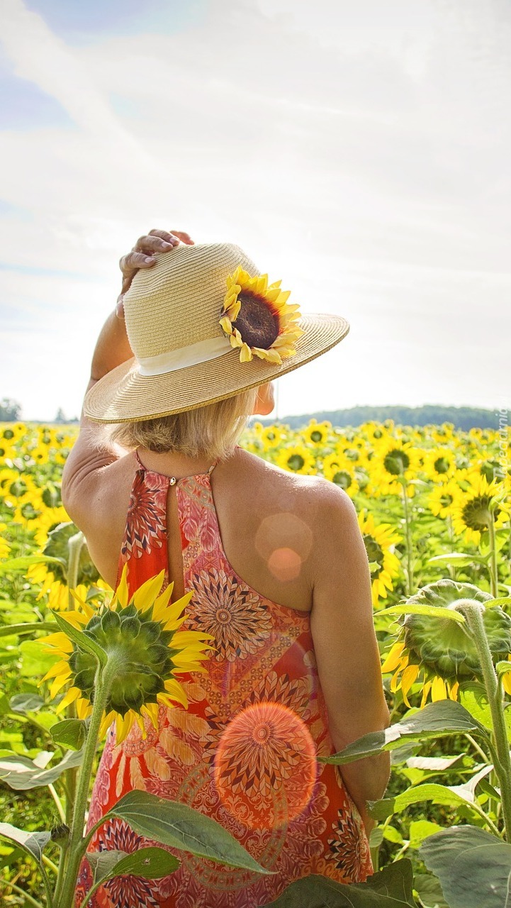 Edytor tapety: Dziewczyna na plantacji słoneczników