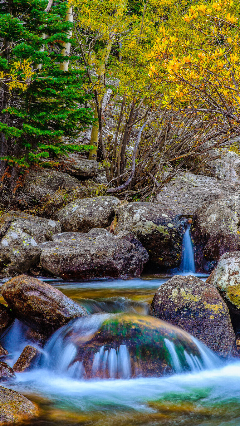 Edytor tapety: Głazy w leśnej rzece