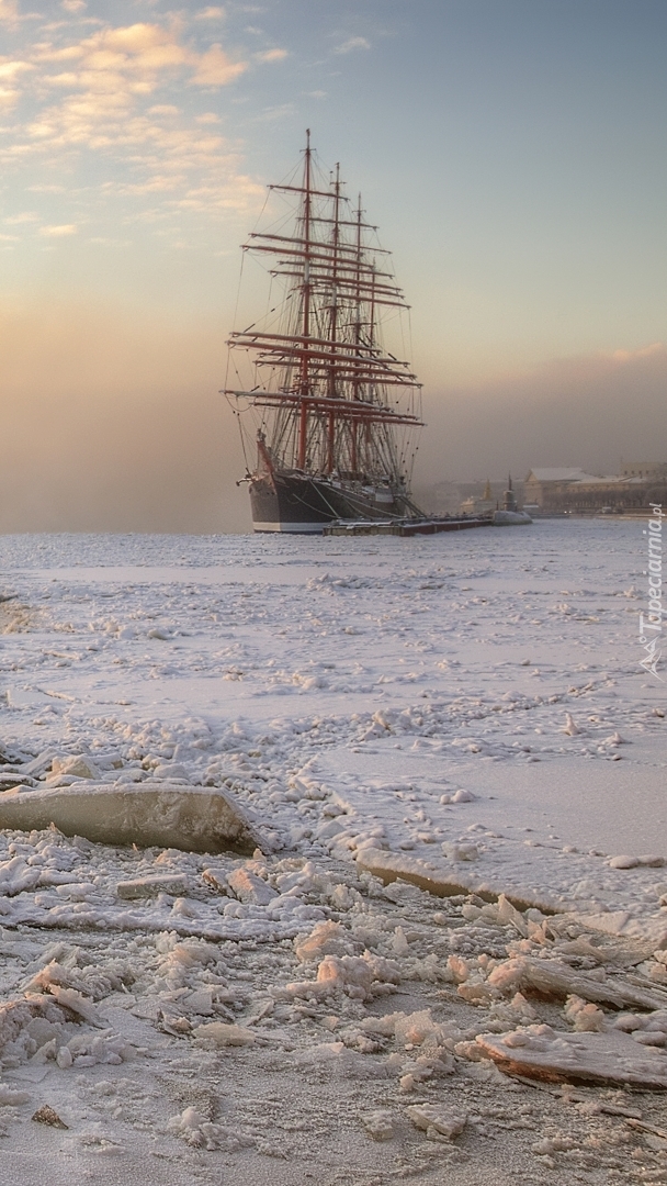 Edytor tapety: Żaglowiec na ośnieżonej rzece