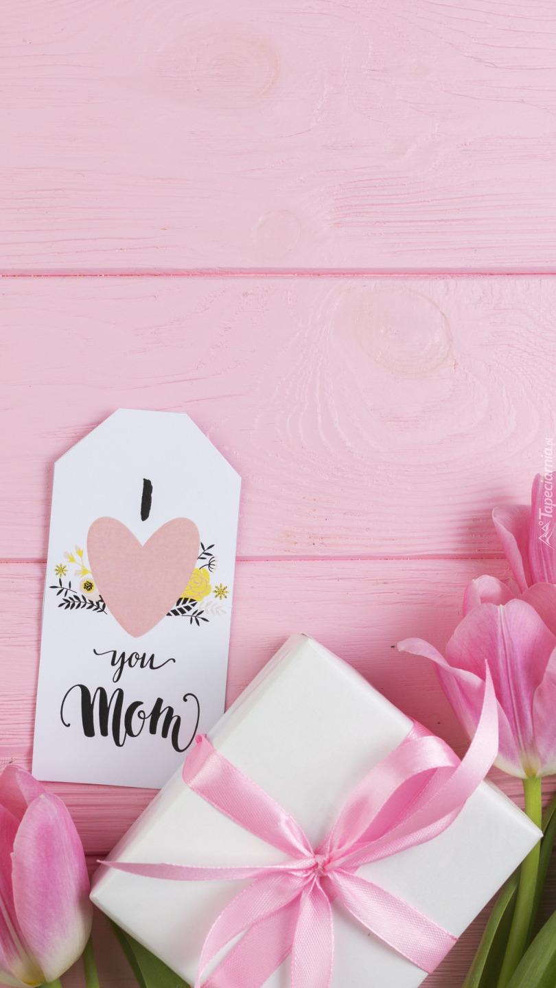 Edytor tapety: Prezent i tulipany dla mamy
