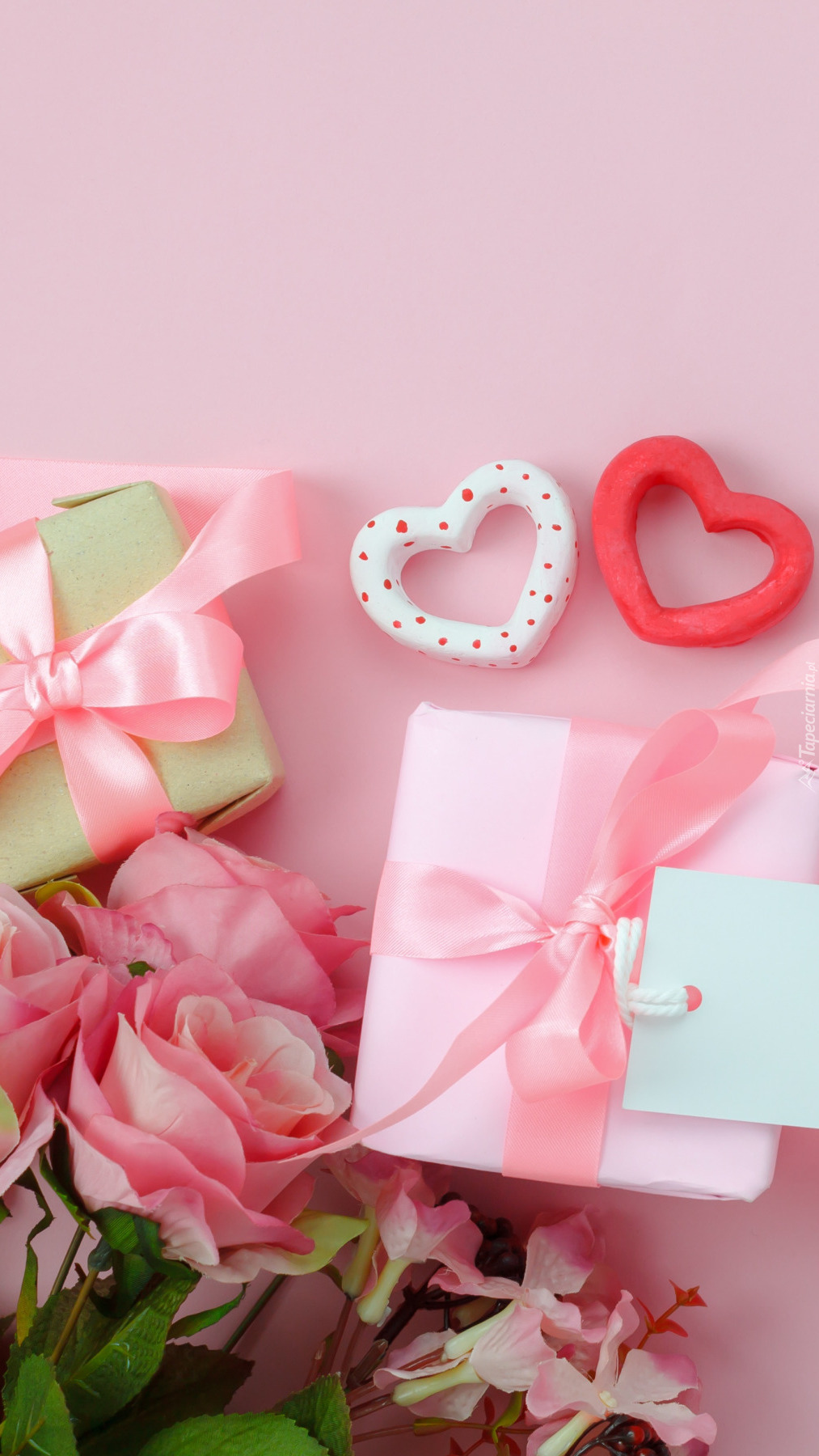 Edytor tapety: Serduszka z różami i prezentami