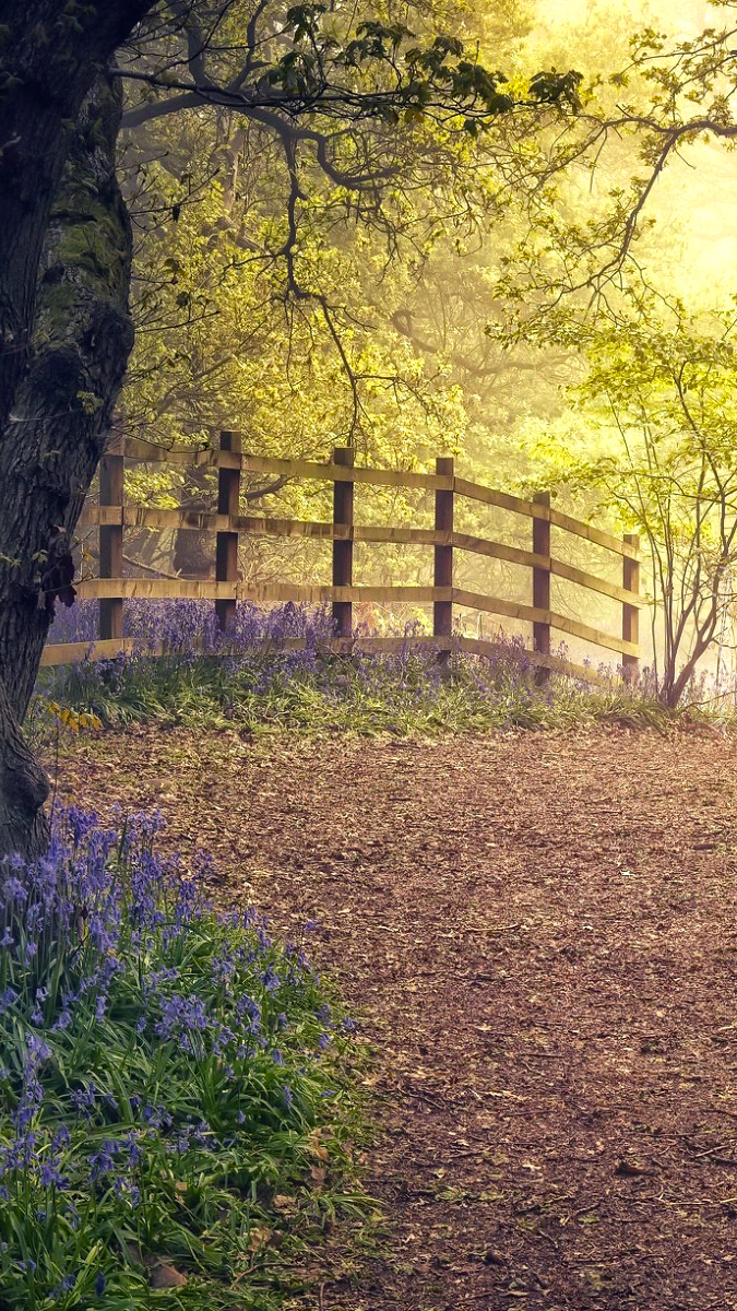Edytor tapety: Wiosenne kwiaty pod ogrodzeniem