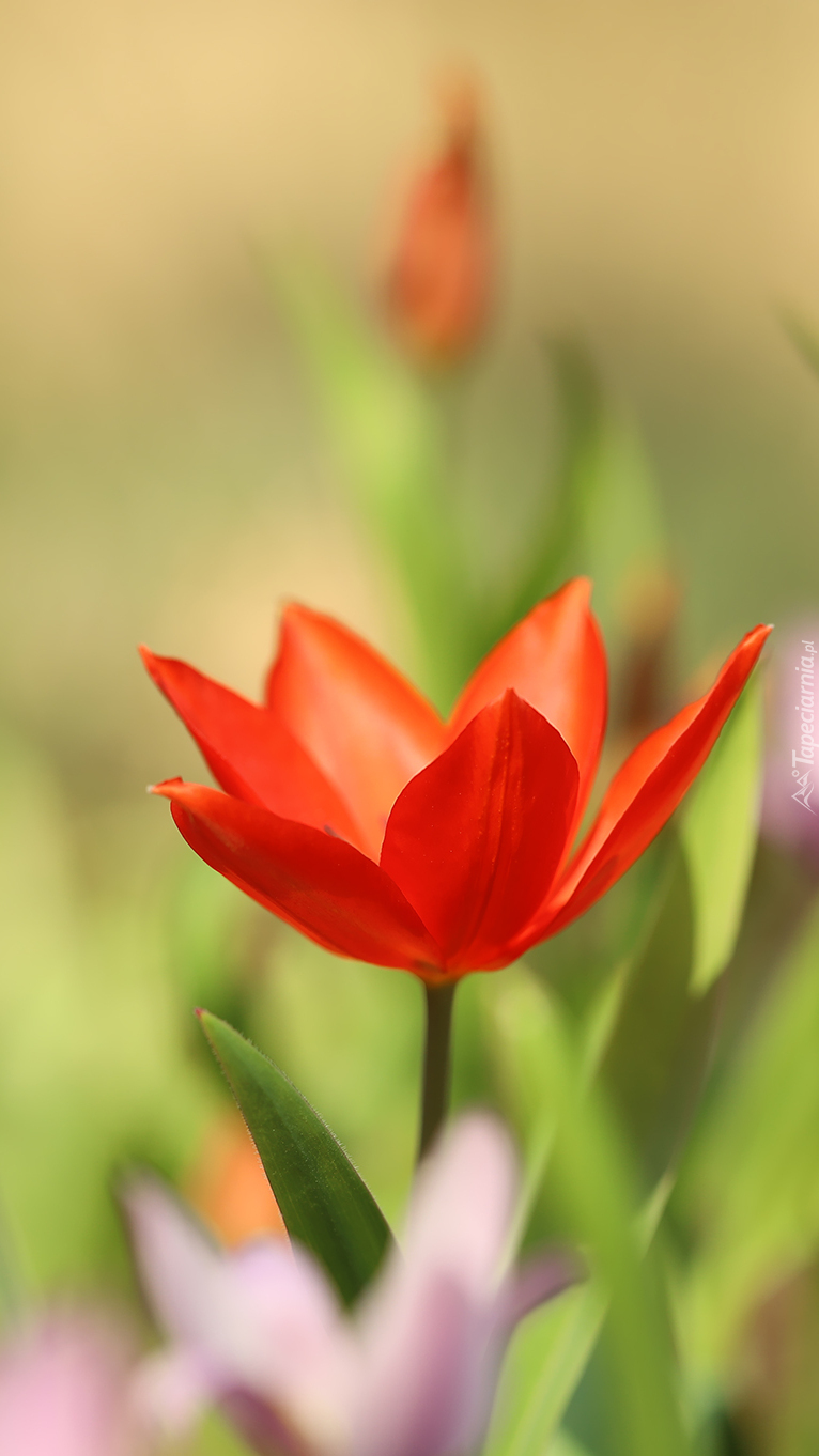 Edytor tapety: Rozkwitnięty czerwony tulipan