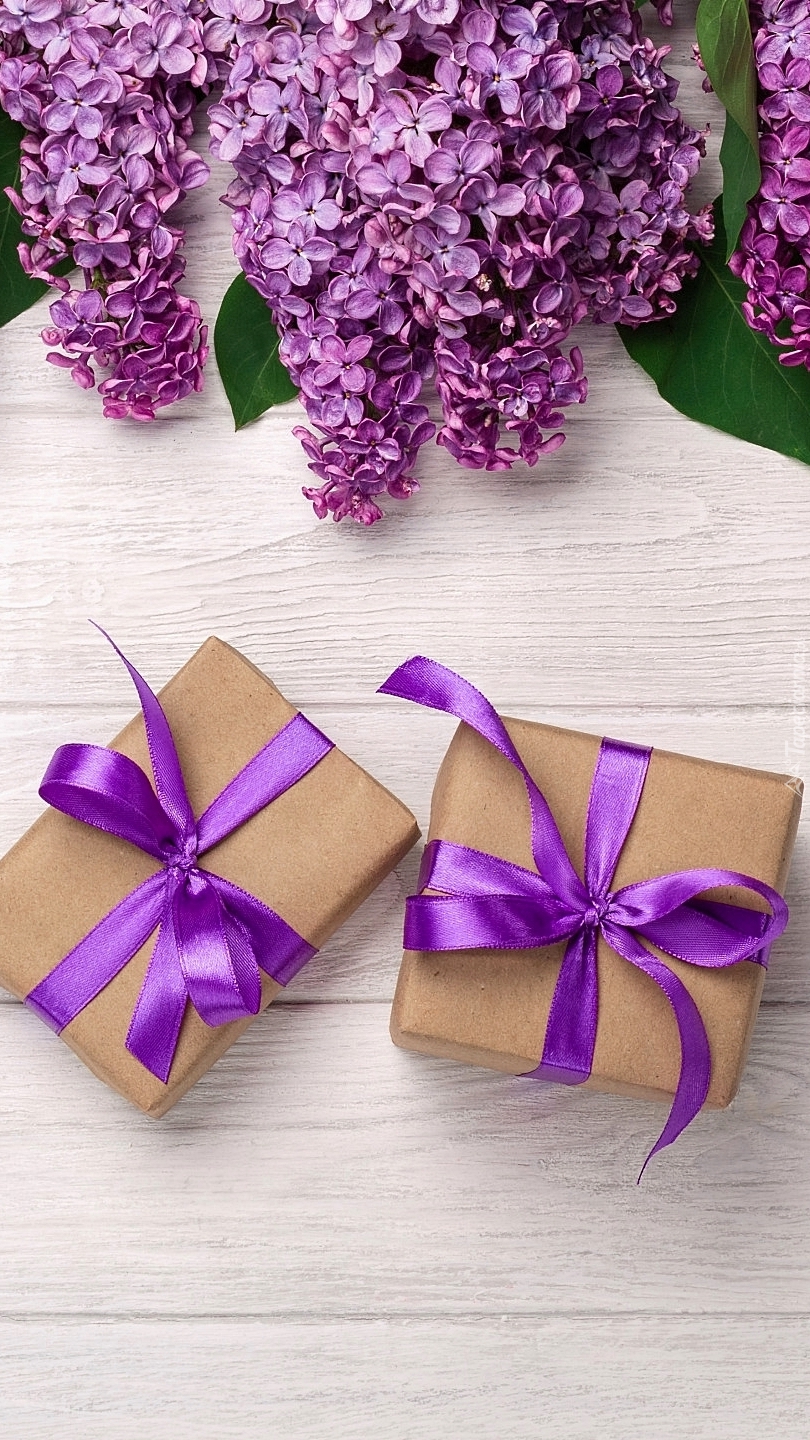 Edytor tapety: Dwa prezenty obok bzu
