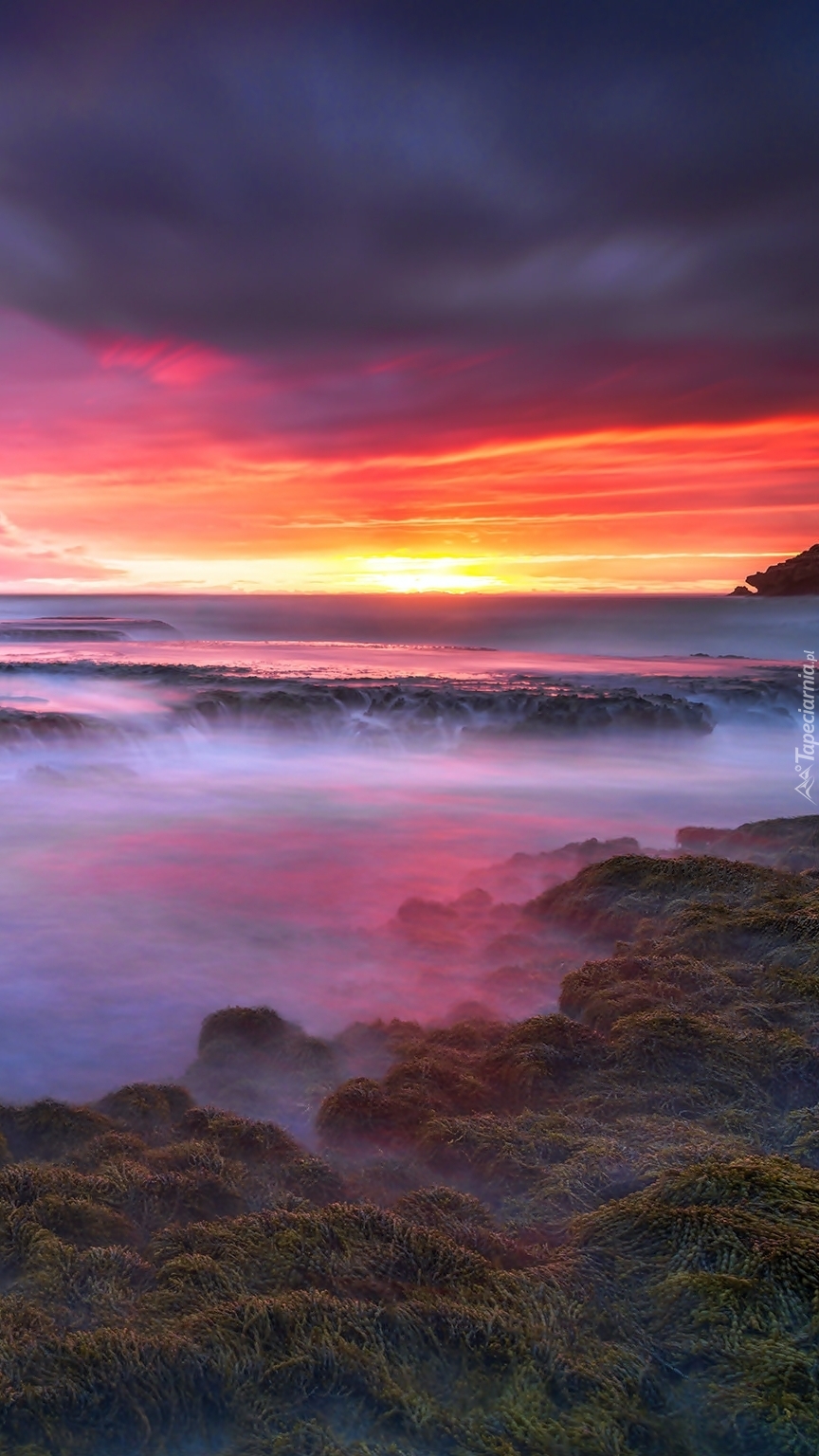 Edytor tapety: Mgła nad morzem o zachodzie słońca