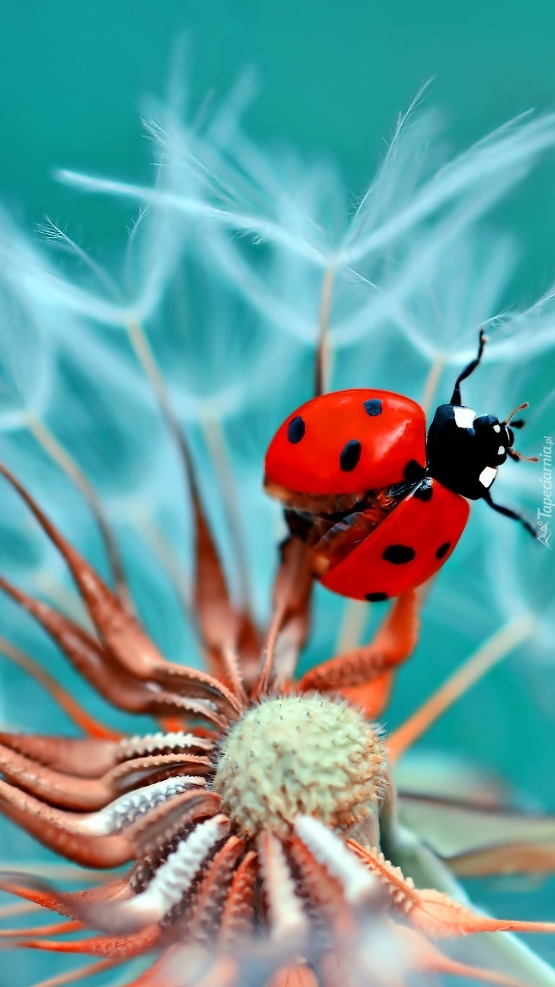 Edytor tapety: Biedroneczka mała na mniszku wylądowała