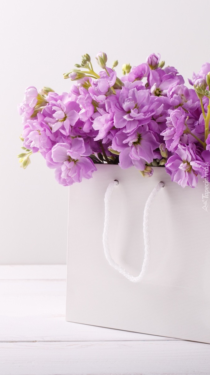 Edytor tapety: Torebka ozdobna z liliowymi lewkoniami