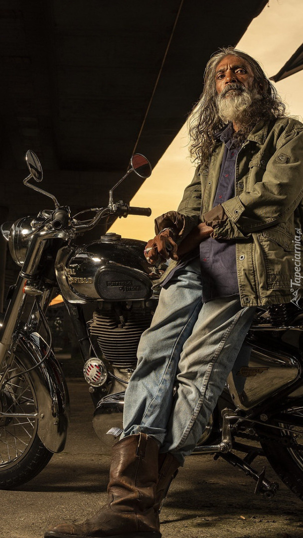 Edytor tapety: Mężczyzna z motocyklem