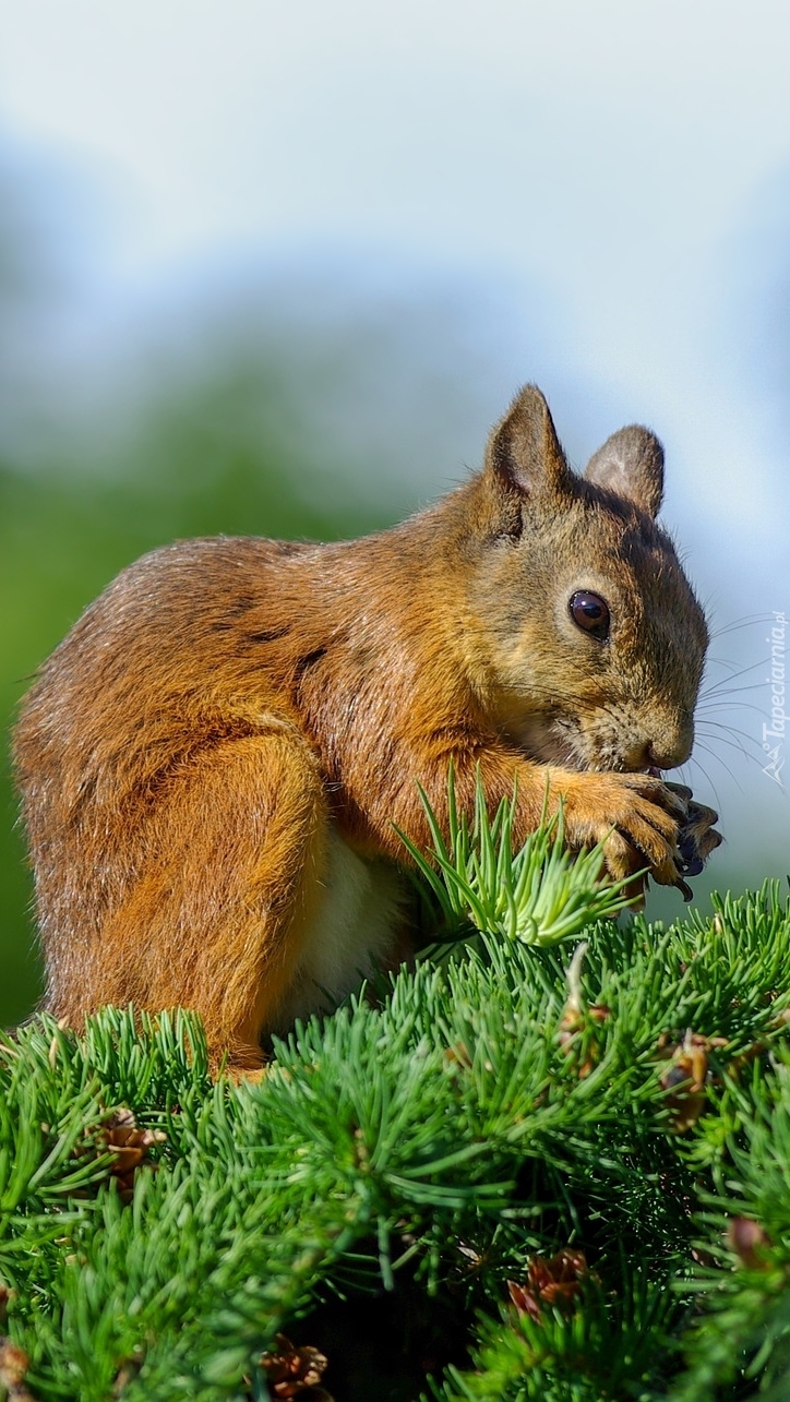 Edytor tapety: Wiewiórka na iglastej gałązce