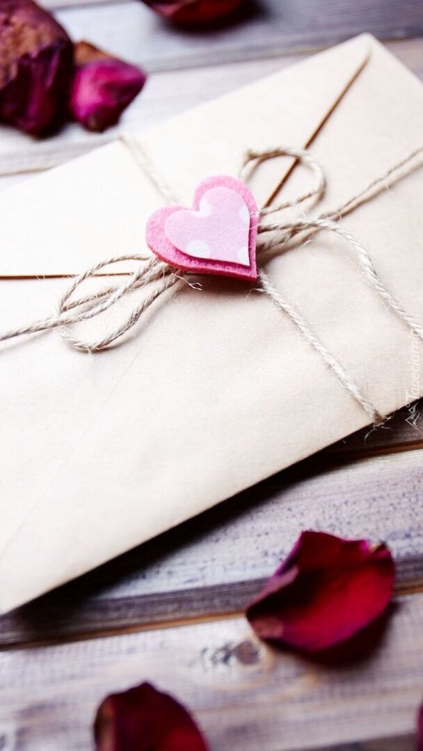 Edytor tapety: Biała koperta ze sznurkiem i sercem