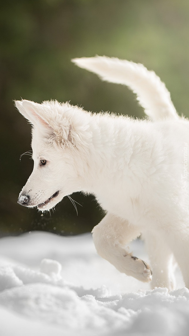 Edytor tapety: Biały owczarek szwajcarski w śniegu