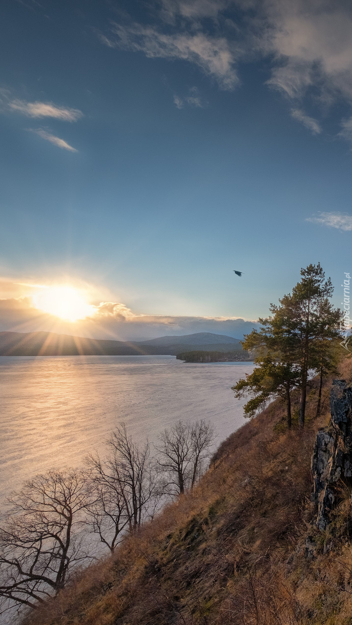 Edytor tapety: Wschód słońca nad jeziorem Turgoyak