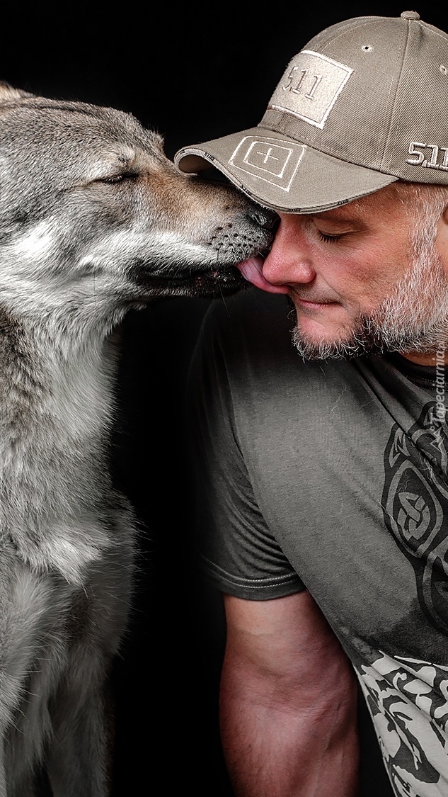 Edytor tapety: Mężczyzna w czapce z wilczakiem czechosłowackim