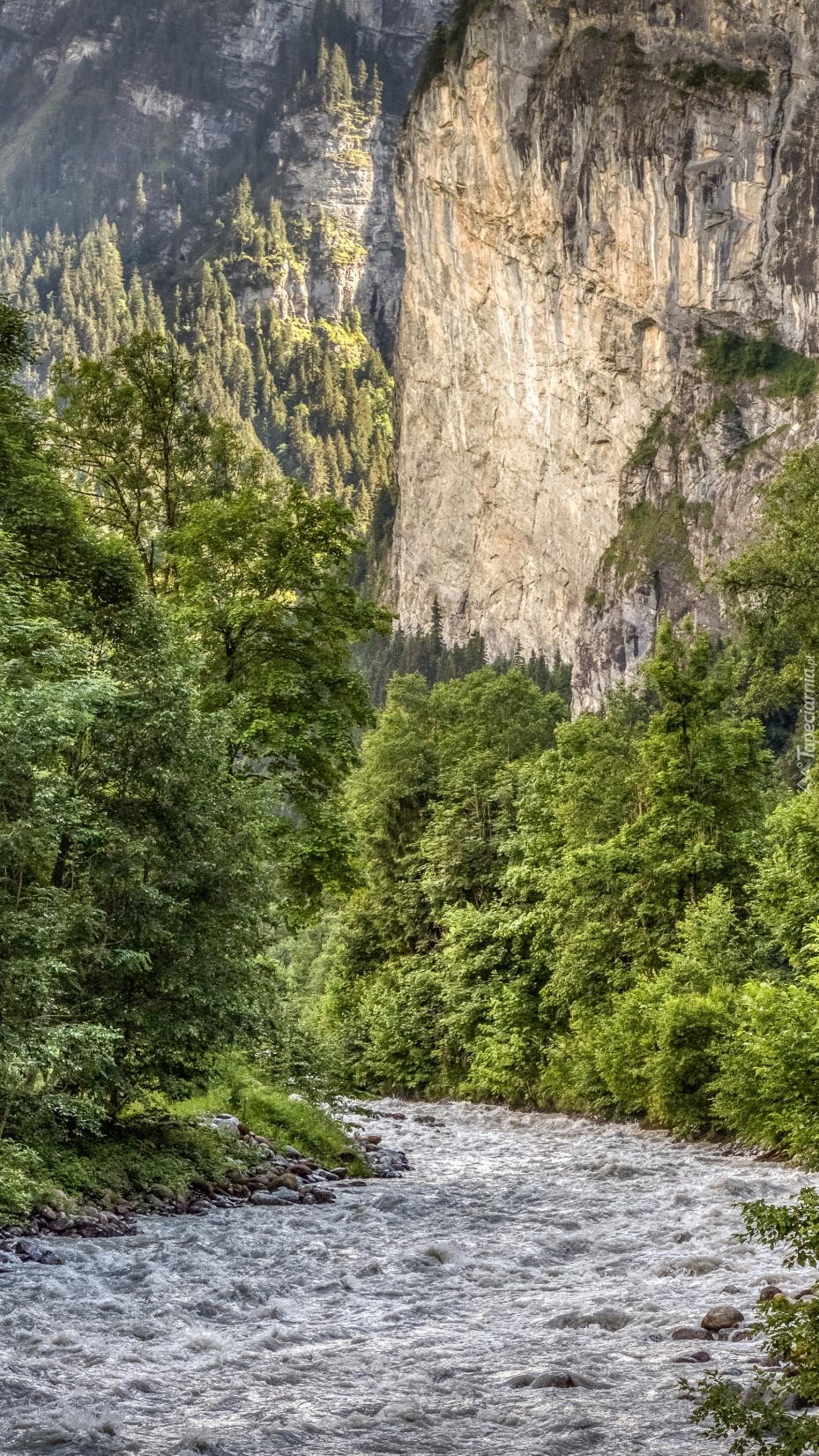 Edytor tapety: Górska rzeka w zielonym lesie