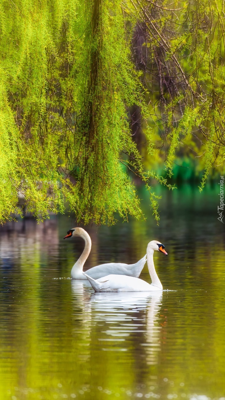 Edytor tapety: Dwa łabędzie na stawie