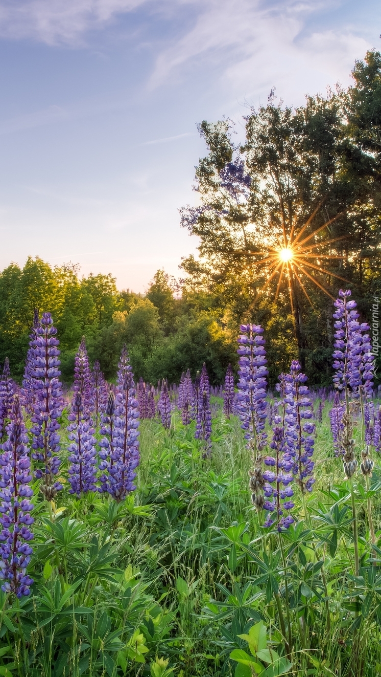 Edytor tapety: Łubiny na łące w promieniach słońca