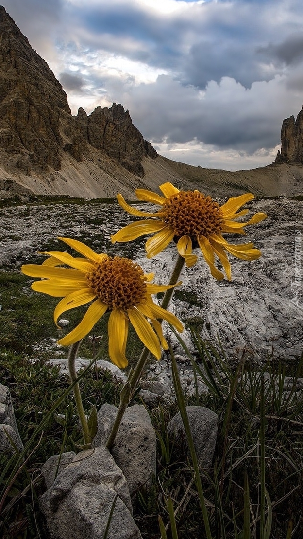 Edytor tapety: Żółte kwiaty na tle gór