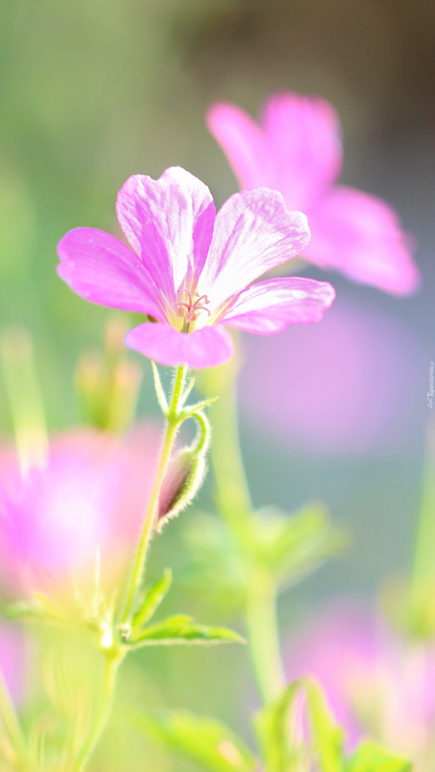 Edytor tapety: Różowe delikatne kwiatki w rozmyciu