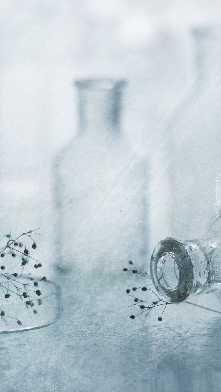 Edytor tapety: Suche rośliny i dwie butelki