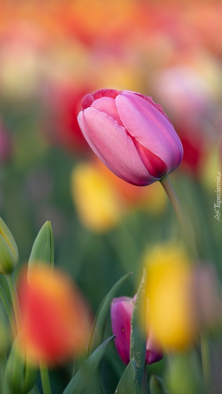 Edytor tapety: Różowy tulipan na kolorowym tle