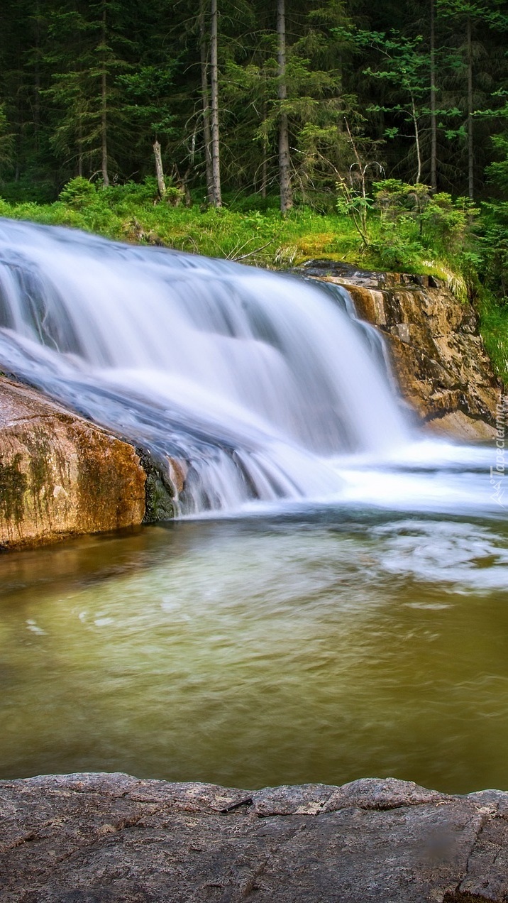 Edytor tapety: Rzeka spływająca na skale