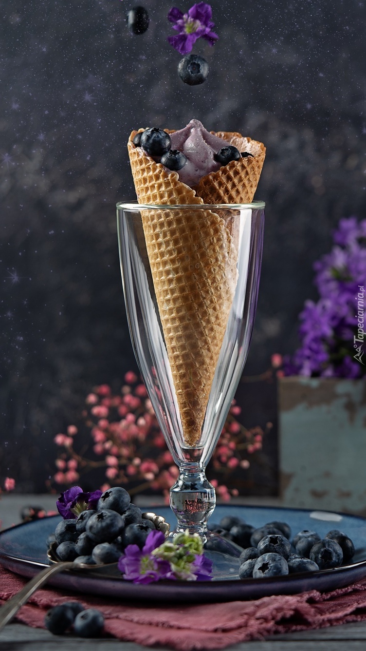 Edytor tapety: Rożek waflowy z jagodami w kieliszku