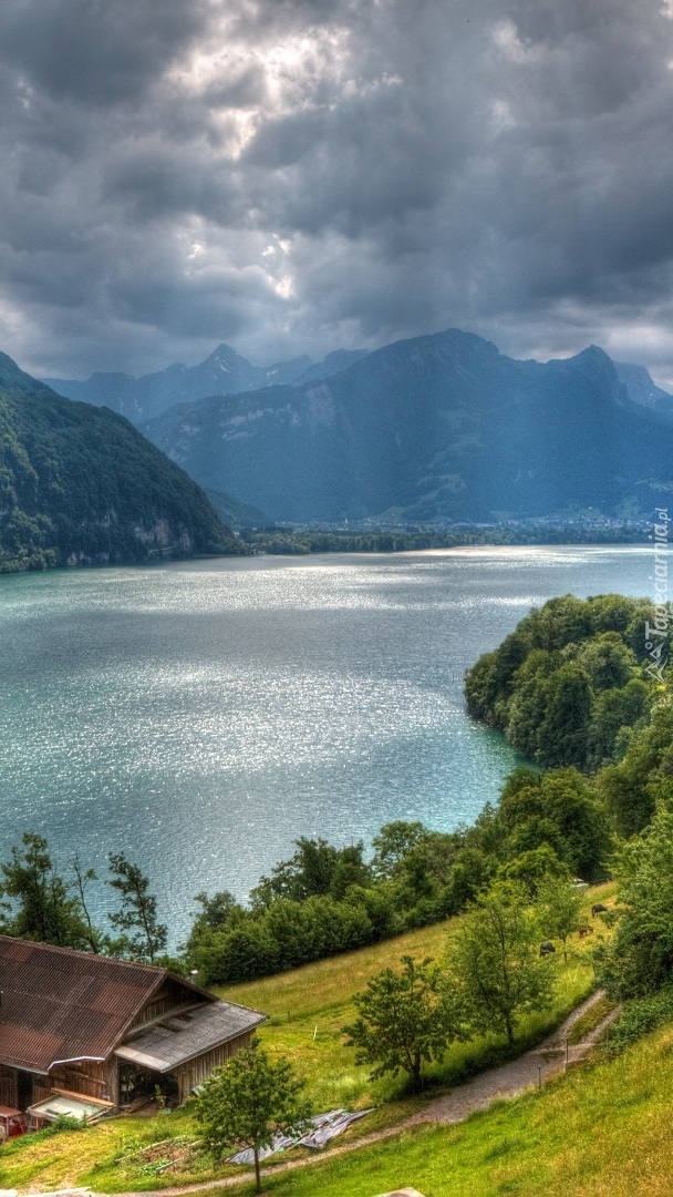 Edytor tapety: Dom nad jeziorem Walensee w Szwajcarii