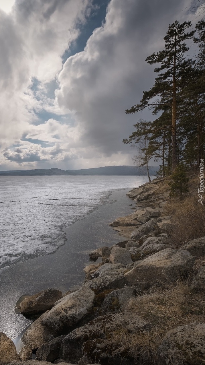 Edytor tapety: Kamienisty brzeg jeziora Turgoyak