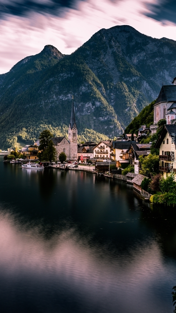 Edytor tapety: Domki nad jeziorem Hallstattersee