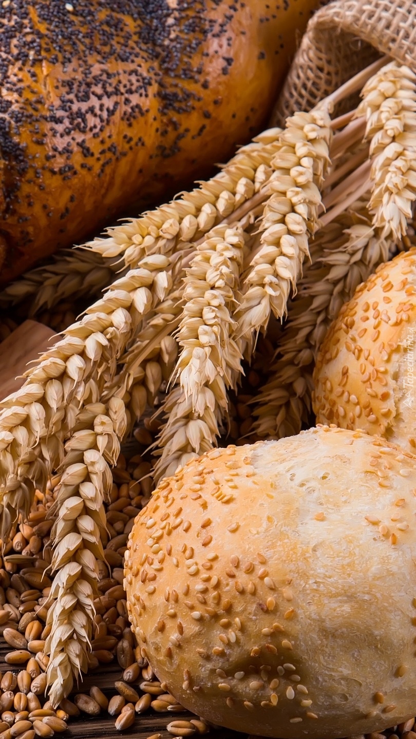 Edytor tapety: Kłosy zboża pośród pieczywa
