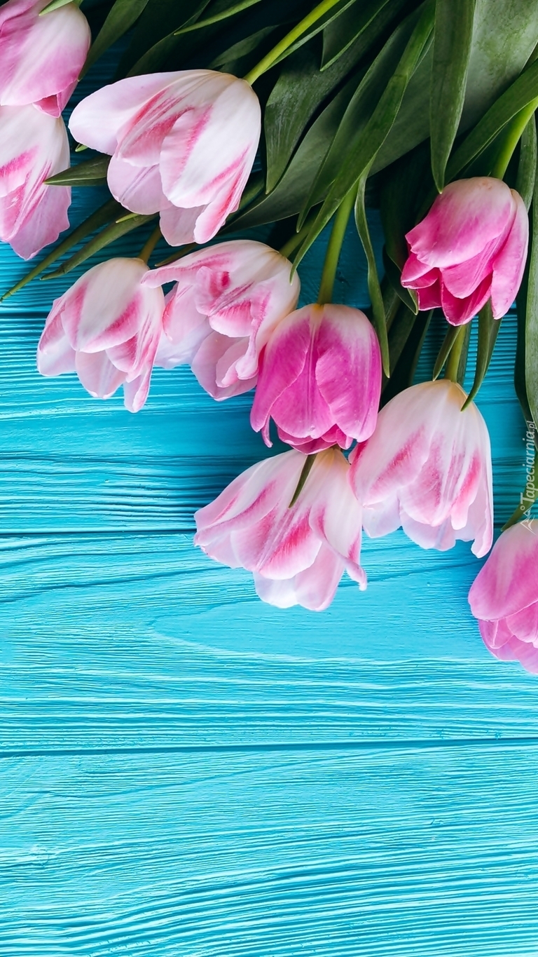 Edytor tapety: Biało-różowe tulipany