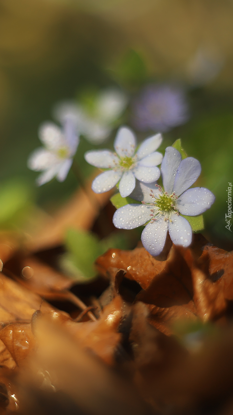 Edytor tapety: Liliowe przylaszczki i suche liście