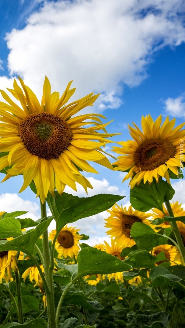 Edytor tapety: Słoneczniki na tle błękitnego nieba