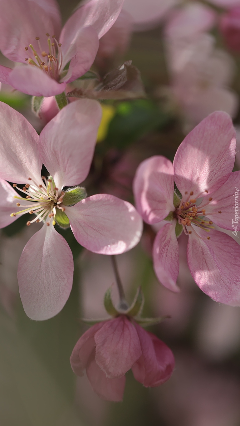 Edytor tapety: Pięciopłatkowe różowe kwiaty drzewa owocowego
